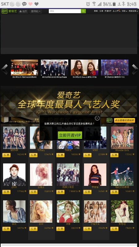http://www.iqiyi.com/yule/2016mama.html 우리 투표수 하위야 하루에 5번 로그인 안해도 돼니깐 들어가서 방탄에 눌러줘 폰으로 중계듣느라 스밍은 공기계야!