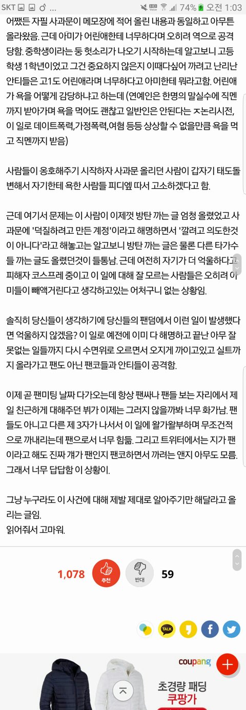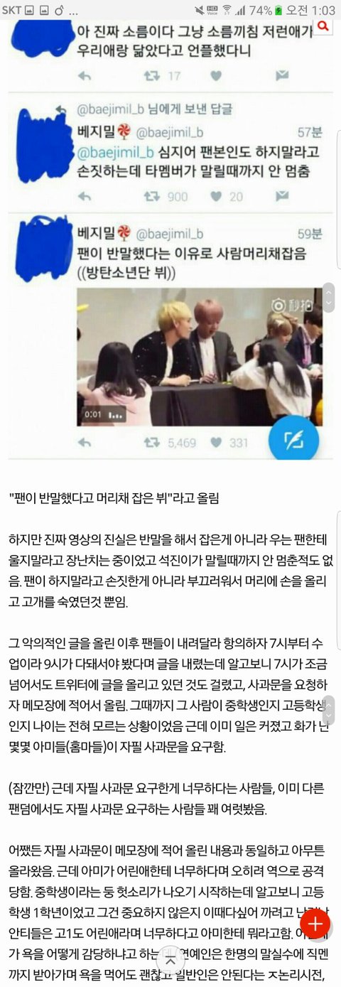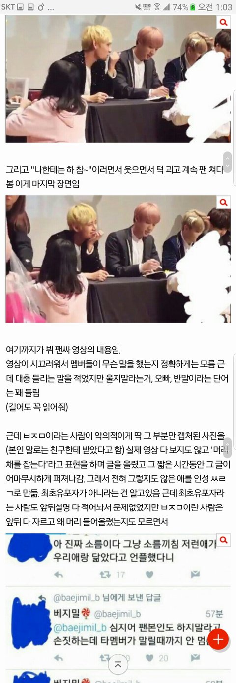지금 남초에서 태형이가 양아치로 몰리고 있다는 댓글을 봐서
