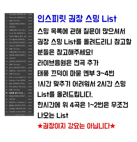+ 1시간 맞추시긴 힘드시구 두시간으로 맞추셨대! 인피니트 온리 수록곡은 물어볼게!