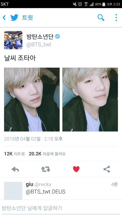 윤기가 2시에 올린 트위터