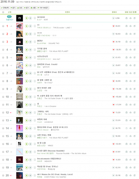 오늘자 멜론 일간순위인데 첸백시 어디있니?
