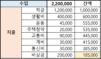 2. 거의 모든돈을 적금이나 저금에 올인하고 있는것....(적금,비상금,청약..)