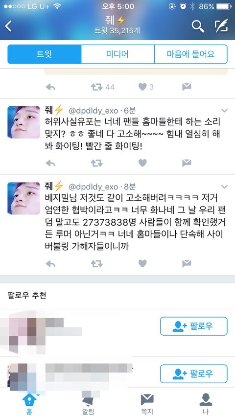 아직도 정신못차리는 애들있네 진짜 ㅂㅈㅁ이랑 싹다 ㄱㅅ해버리고 개네가 힘들었음좋겟다...진짜 우리도 이렇게힘든데 애들이 정신적으로 받은 스트레스를 생각해보면 ....말도안나와 진짜 너무 혐오스러워그냥 재네가...이름가려야되면 말해줘 이삐들...!