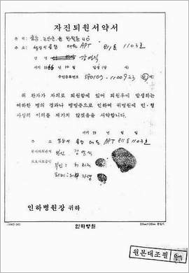 의사들은 도저히 믿을 수 없는 황당한 이야기로 들렸던지 수술을 하지 않으면 큰일 난다고 하면서 마취 도구를 가져왔습니다. 그래도 퇴원할 뜻을 강력하게 비치니 각서를 써야 한다고 하길래 제가 앞으로 퇴원하고 난 후에 비록 사망할지라도 병원 측에는 아무 책임이 없다는 내용의 각서를 써 주었습니다.
