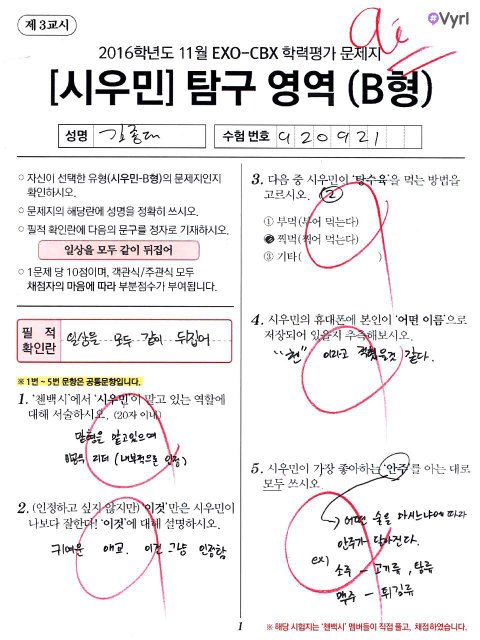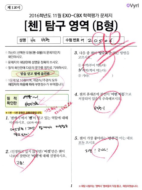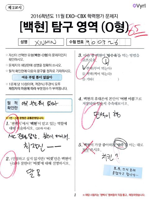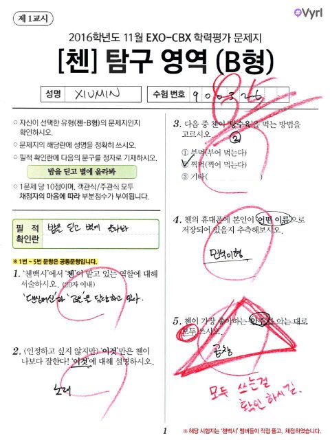 변백현채점한거 학교에있는 남자애가 채점한거같아ㅋㅋㅋㅋㅋ
