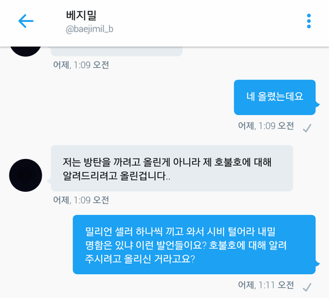 이 이후로 답이 안 온다 이쯤 되니까 고의적으로 무시하는 거 같아서 기분이 나빠지려 하는데 혹시 저 이후로 디엠 보내서 답 온 사람 있어?