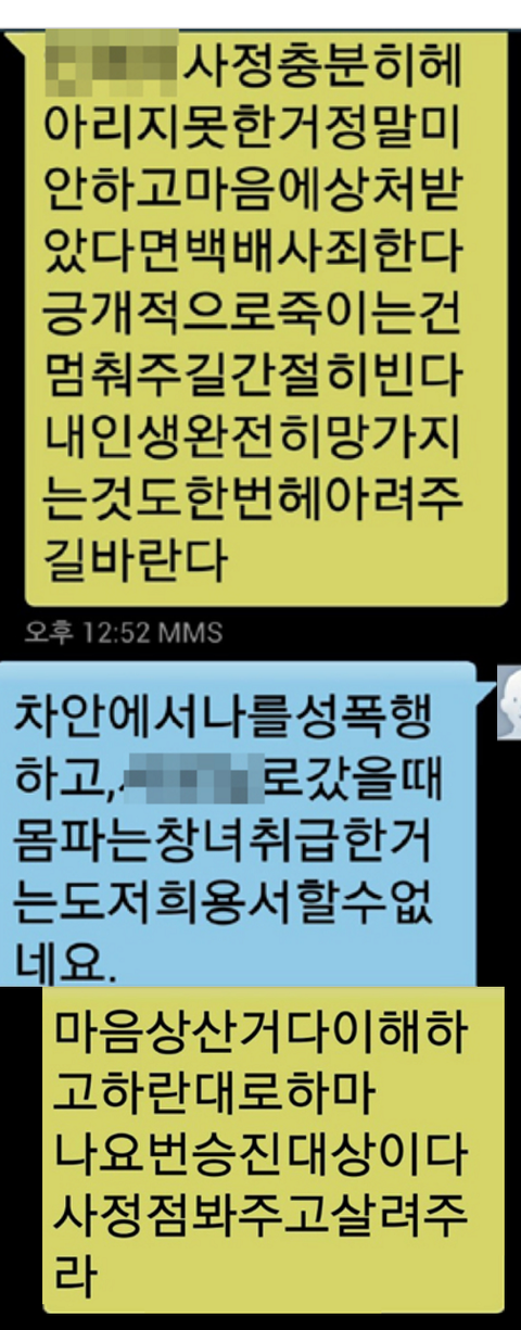 강간범이 피해자한테 보낸 문자
