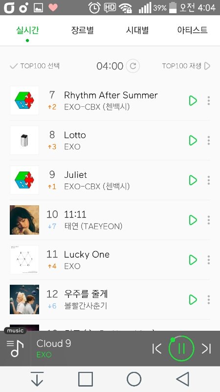 좀더돌려서 몬스터 2위찍고 럭키원10 위안에 들어서 무려 8곡이 10위안에 들엇음 좋겟다... 만약 든다면 엑소엘 최고임