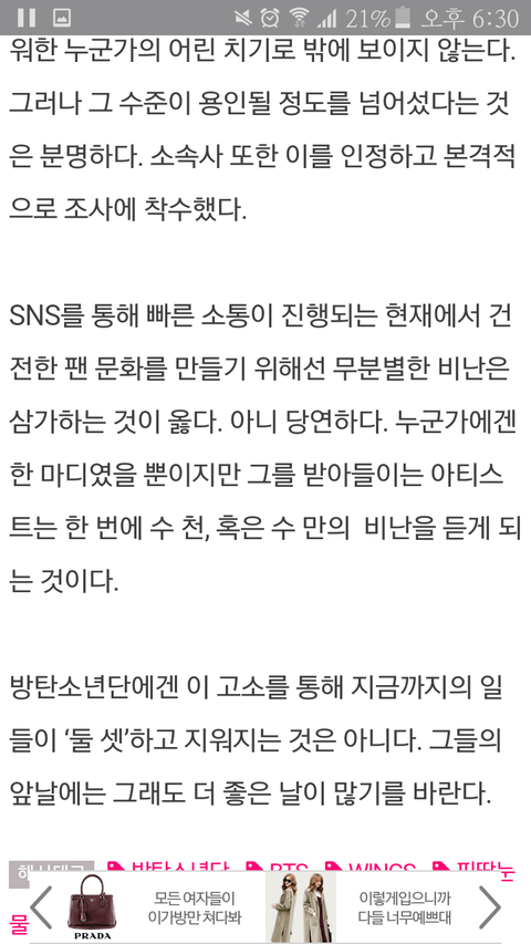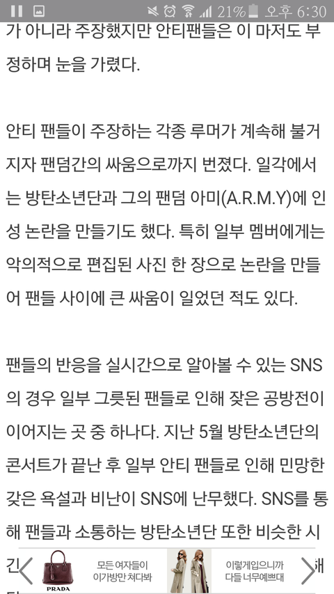 아미인 친구가 보내준 기사 보다가 놀랐어. 그동안 판이나 짹에 눌러붙어 있으면서 보던 내용들 그대로라 커뮤 글인 줄 알았다. 기자들도 저렇게 상세히 알 정도면 이미 소속사나 멤버들 뿐 아니라 업계 사람들도 다 아나 보네.