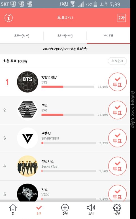 으아어어어어어 내가방금 20표 쏟아부었는데 대박대박대박 대박대박 갑자기 1위야 빨리 안한이삐들가서투표해 으아어ㅓ앙 유지하자 ㅠㅠㅠㅠㅠㅠ 추가)다시2위래..열투하자ㅠㅠ