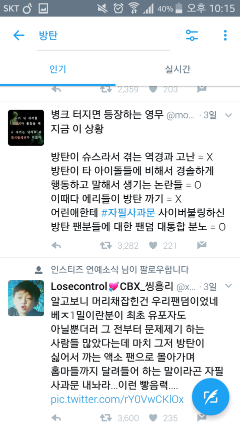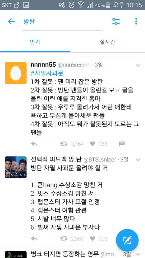 일단 내가 직접 못따서 너무 미안해..내가 진짜 폰맹컴맹이라서 피디엪 아무리 해봐도 못하겠어서 그러는데 저사람들 이삐들이 벌써 땄겠지?? 혹시 아니면 능력자이삐들이 좀 따주라 방탄만 검색했는데도 저렇게나오면 서방으로 찾으면 얼마나 심할까 진짜 마음아파 제발 다 합의없이 벌받았으며뉴ㅠ
