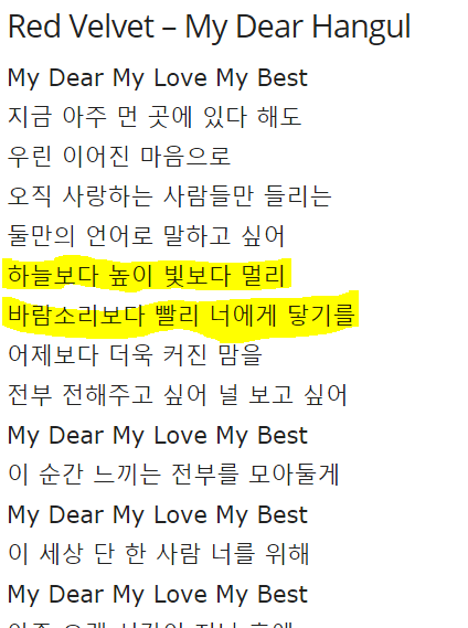 my dear 가사 예쁨 저것 말고도 웬디 파트인 처음 내게 말했던 너의 꿈 그 크기 그대로 세상에 억눌려 작아지지 않기로 약속해 이것도 킬링파트bb