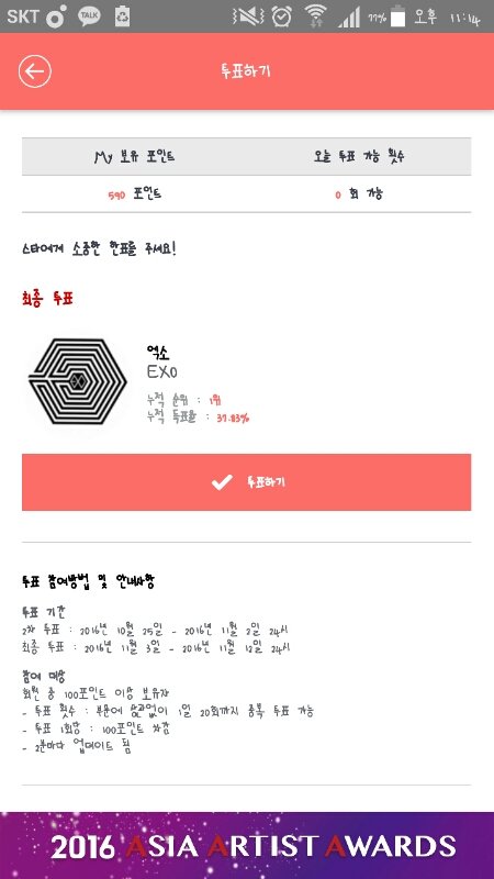 590포인트 남았는데 투표횟수가 없어