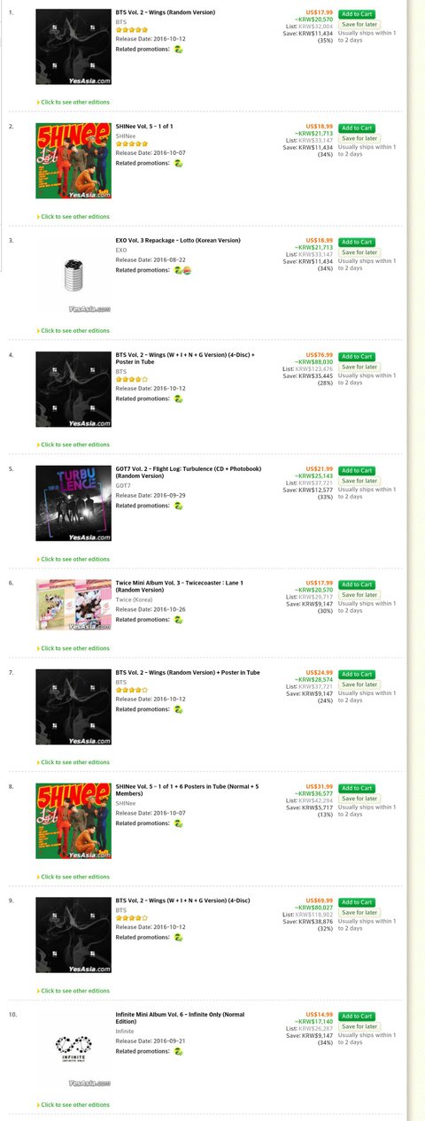 2016년 해외에서 가장 많이 팔린 한국앨범 TOP1P