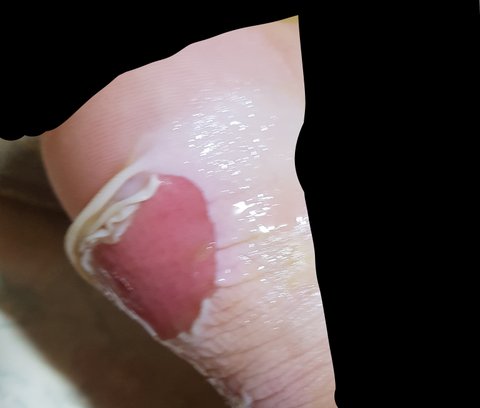 근데 뒤꿈치 부분이 너무 아파서 새 신발 신어서 그런가보다 했거든? 오늘 봤는데 살이 엄청 심하게 까졌더라..