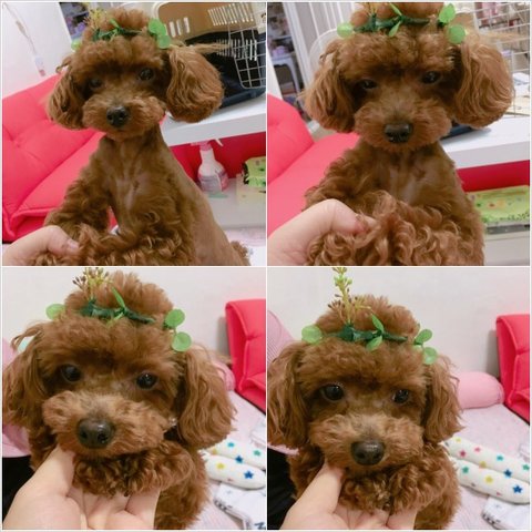 자투리로 로이 화관을 만들어 씌워줬는데