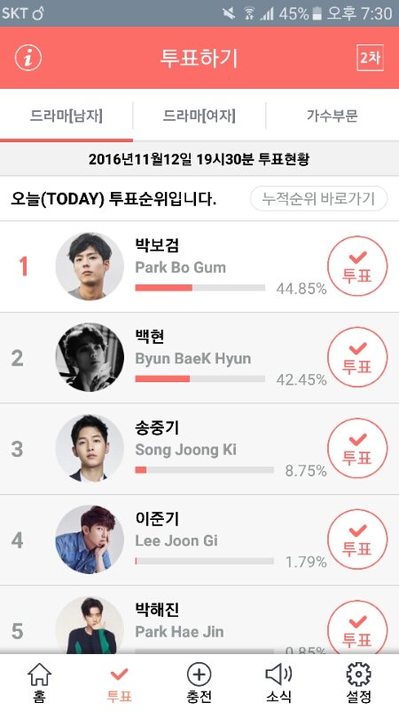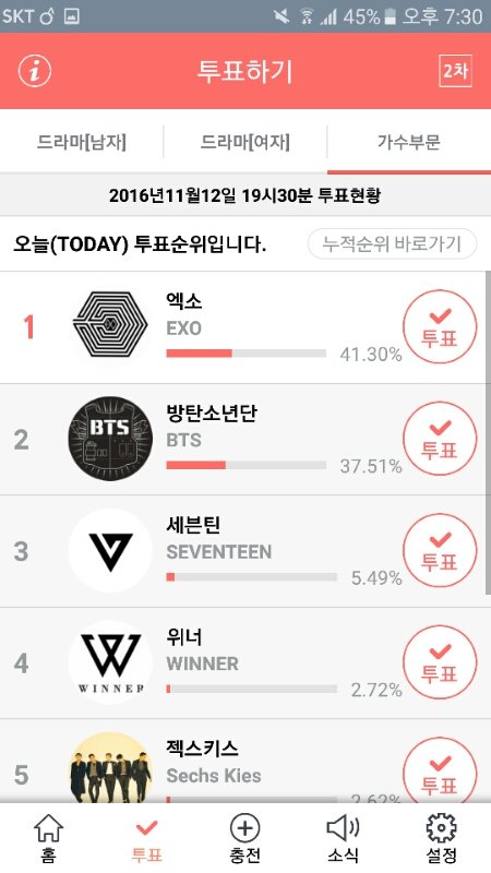 백현이 아까 30분만에 10퍼 올랐긴한데 지금다시 0.1퍼씩내려가고잇음 엑소도 1위긴한데 몰아뒀다가 한번에할수도잇고 아직안심할수없음ㅇㅇ오늘이 마감이니까 끝까지 할수잇는데까지해보자 ㄱㄱ