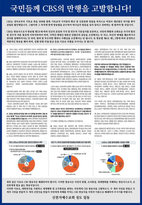 국민 여러분들에게 CBS 방송국을 고발하오니 국민에게 피해흫 끼치는 CBS 방송국을 국민의 이름으로 폐쇄하여 주시기 바랍니다.