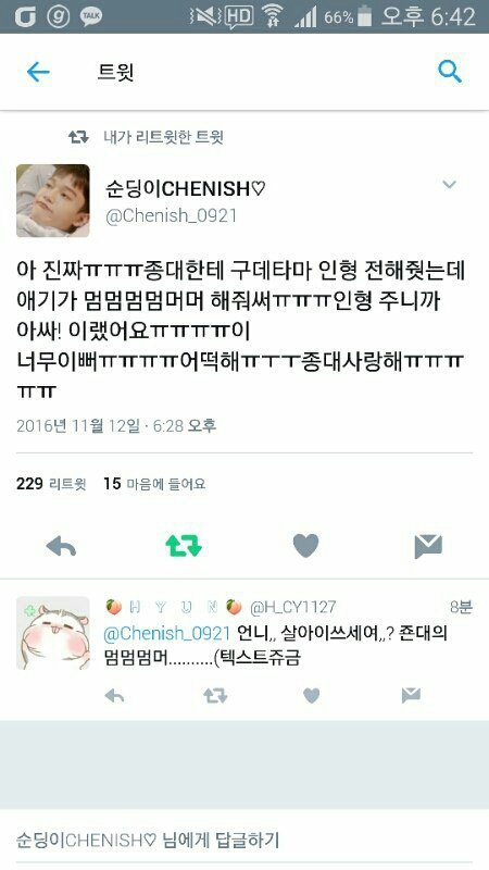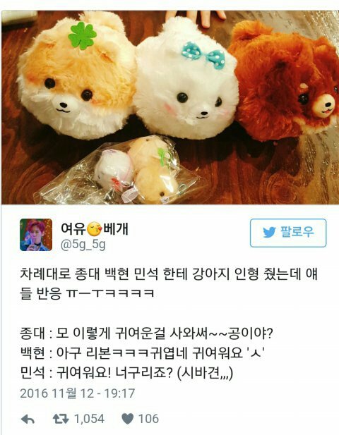 인형 선물받고 종대 반응