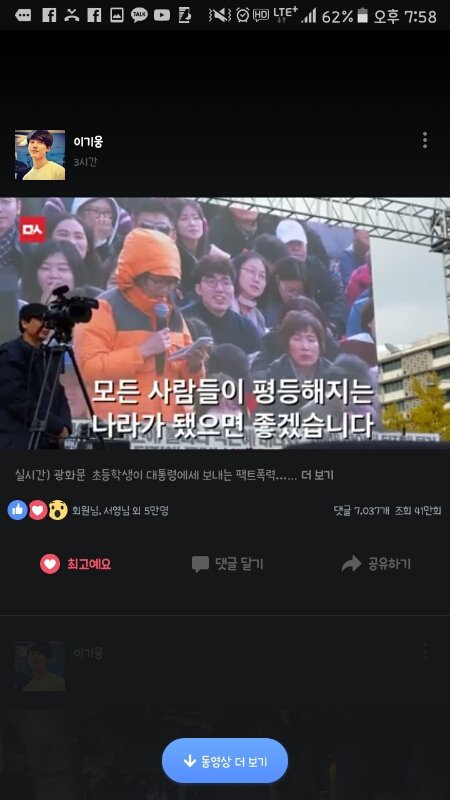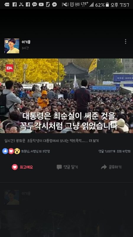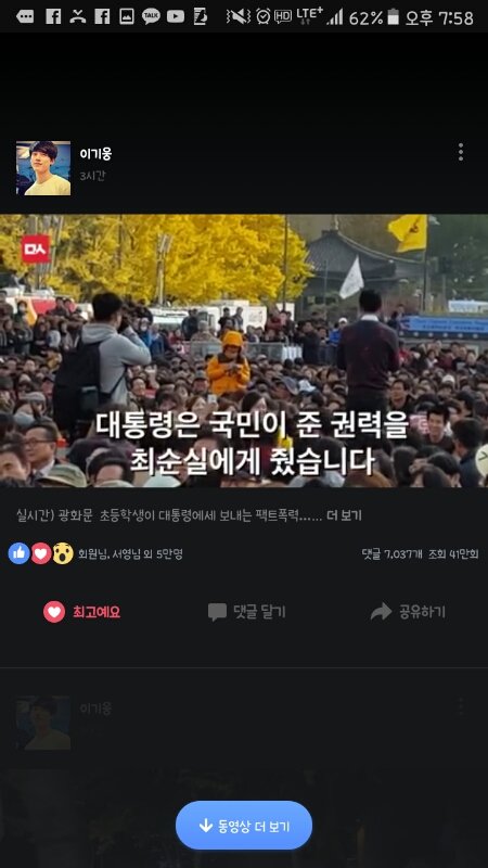 (필력 딸리는것좀 이해해죠 .. ㅠㅠㅠ) ㅈㄱㄴ . 내가 아까 페북에 올라온 동영상중에 초등학생이 대통령에게 보내는 팩트폭력이라는 제목으로 된 동영상을 엄마한테 좀 보라고 보여줬거든 ? 근데 엄마는 평소에도 대통령 그렇게 욕하는거 아니라고하고 광화문 시위나갈때도 그다지 좋은 반응은 아니였어 그래도 엄마도 생각을 좀 바꾸라고 보여줬더니 이런거 안본다고 넌 이런거 보는게 재밌냐그러고 내가 왜 이런걸 봐야하냐고 소리지르다싶이 말하시길래 너무 어이가 없어서 말문도 턱 막혔어. ㅋㅋ 근데 우리엄마가 평소에 화도 잘안내시고 착하신분이셔 한편으론 우리집은 티비를 하루종일 본다고 갖다버려서 뉴스도 집에서 제대로 못보고 인터넷 기사같은걸로 보고살아. 내가 중1인데 전에도 박근혜에 대해서 안좋은얘기를 엄마앞에서 해주니까 엄마는 나보고 어려서 잘 알지도 못하면서 대통령에 대해서 그렇게 비하발언하는거 아니라고 그래도 한나라의 대통령이라는거야 ; 솔직히 내가 어리다는 이유로 대통령때문에 나라망해가는거 그냥 대통령이니까 상관없어. 이러는것도 미친거잖아 ㅋㅋㅋㅋㅋ 우리집이 종교적(?) 그런게 강해서 기독교라 그런지 엄마랑 말하다가도 우리엄마가 이상한걸까 아니면 지금 시위하고있는사람들이 이상한건가 헷갈려 평소에도 나 어리다고 경제 그런거 신경쓰지말라하시는것같구.. 너무 싫다 진짜로. 내 또래애들은 지금 상황이 어떤지 다 알고있어 방금도 엄마가 내가 저기있었으면 뚜들겨팼을텐데 이럼 ㅋㅋㅋㅋㅋㅋ 우리엄마가 확실히 이상한거 맞지 ?(동영상은 혹시몰라서 캡처해놨어)