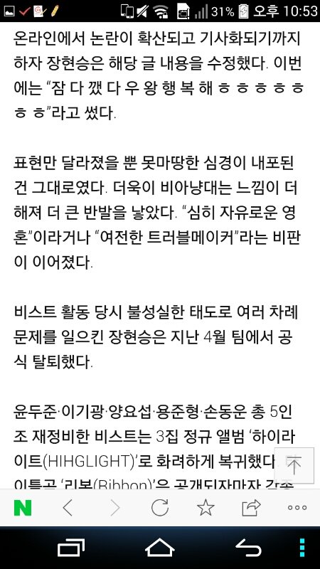 장현승이 한동안 태도 논란 일어나고 비스트 탈퇴하고 그래서 그 이후에 잘사나...좀 추스리고 사나..좀 변했나 싶었는데 별로 달라진게 없는거 같아.. 예전에 뭐 팬은 아니지만 그래도 좋게 봤었는데 목소리 좋아해서 이제는 별로 그것도..