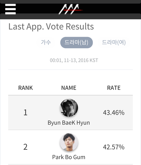 AAA 백현이 1위 ㅊㅎㅎ