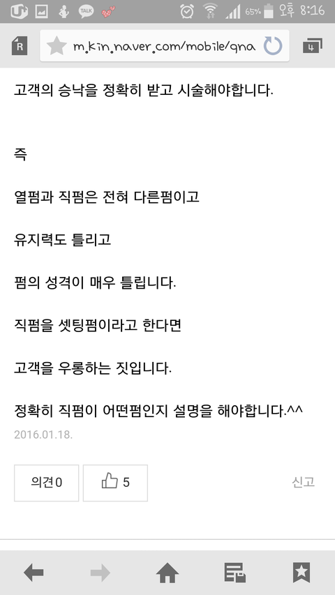 직펌은 셋팅펌과 아예 다르고 제가 셋팅직펌 해달라고 하지 않았다면 연화셋팅펌을 하는게 맞다고 그러더라구요. 혹시나 그말이 잘못 됐을까봐 계속 알아보고 찾아다녔고 돌아오는것은