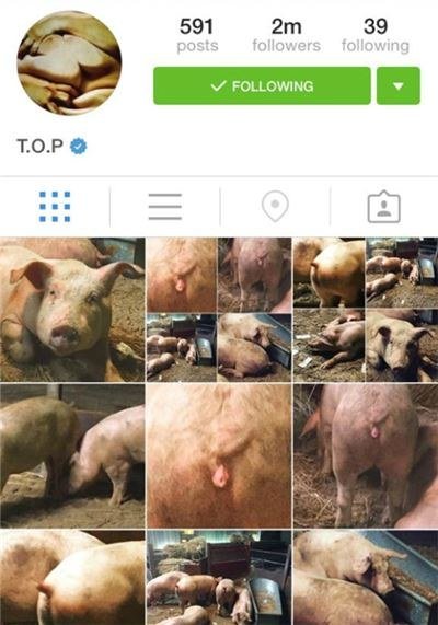 탑이 SNS에 올린 돼지똥구멍사진.