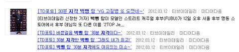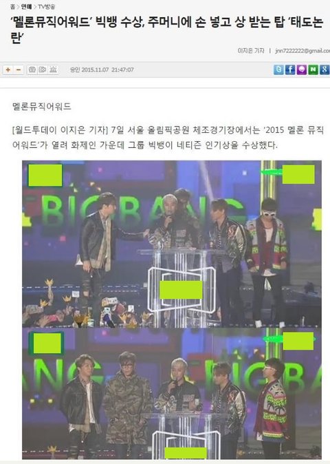 시상식, 탑 태도논란.
