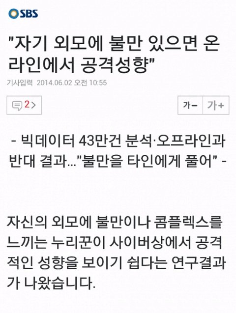 못생길수록 인터넷에서 공격적 ㅠㅠ