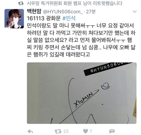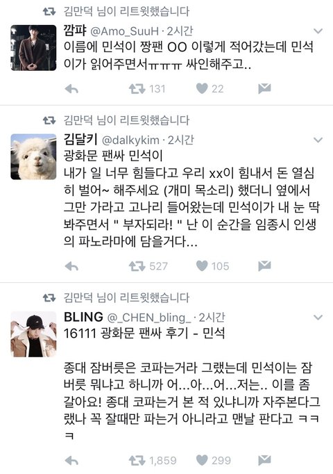 웅녀들 모두 고마워! 팬싸 되게 재밌었나봐 ㅋㅋㅋㅋ 민석이 재밌는 사람 ㅎㅎㅎ