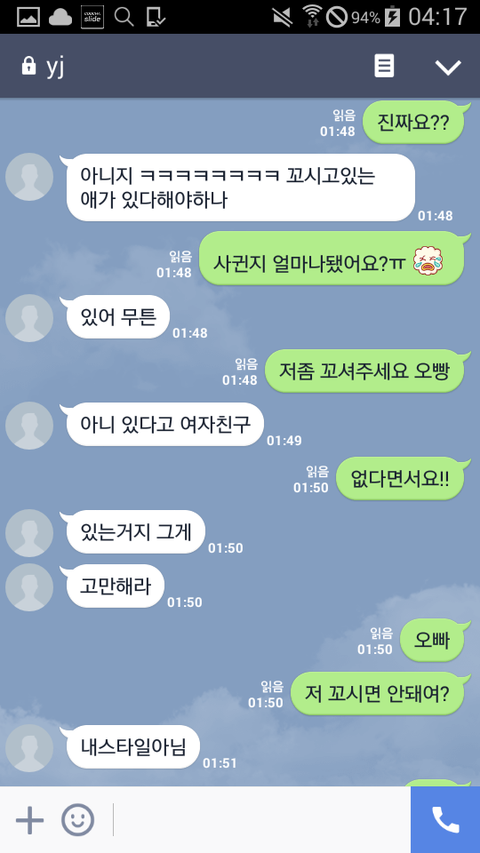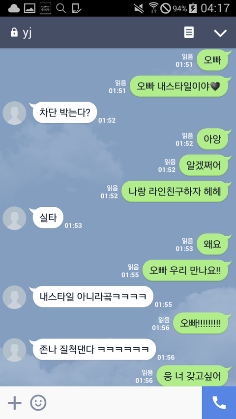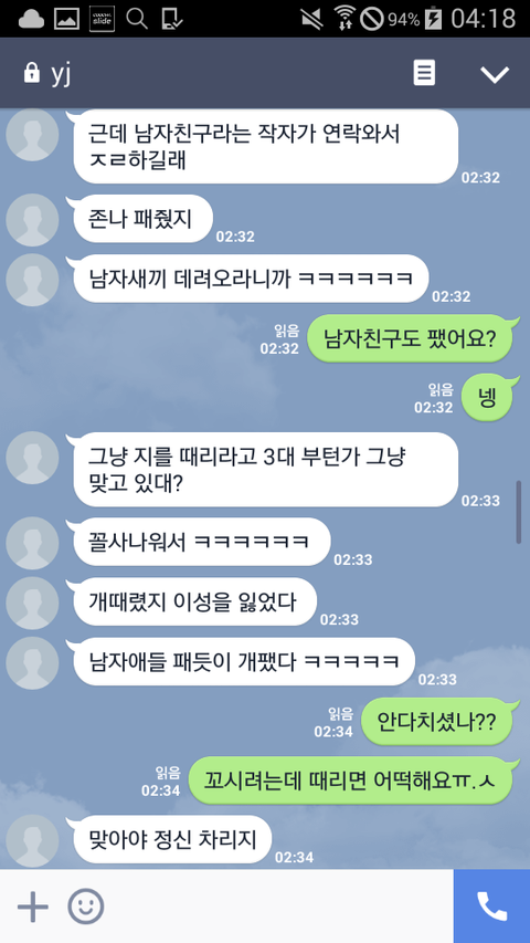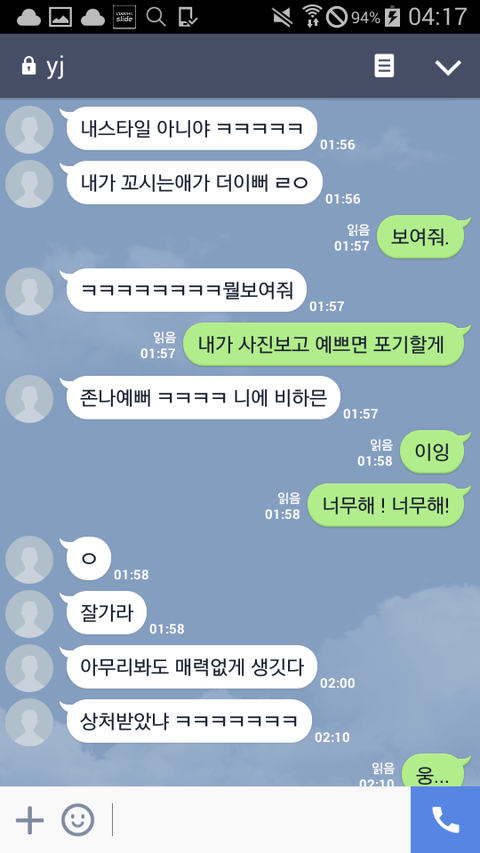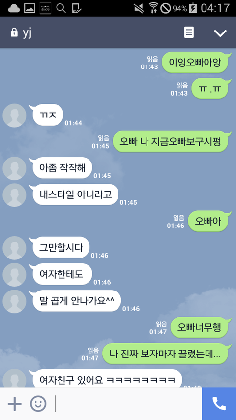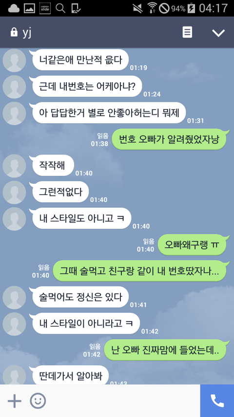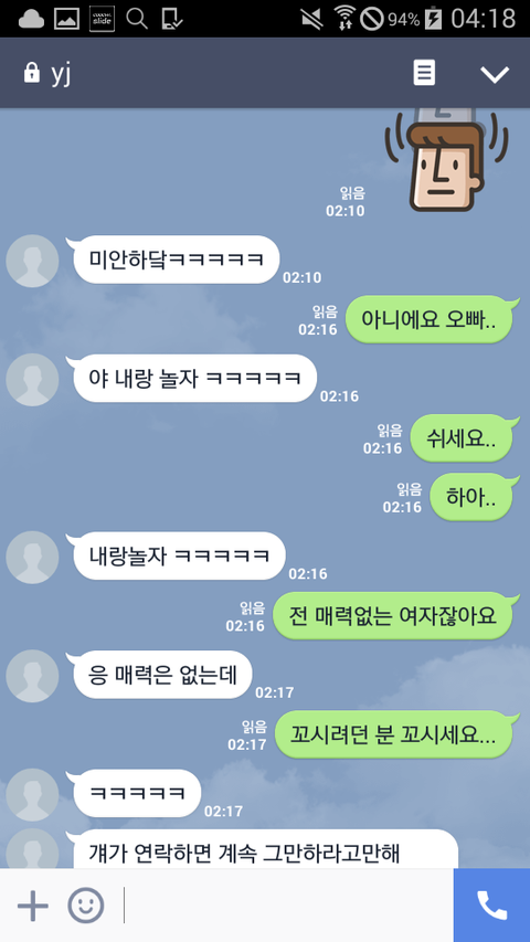 저는 분노했고 여자친구에게 그의 라인 아이디를 저에게 보내라고 했고 저는 라인으로 연락했습니다. (카톡은 전남친이 자꾸 끊긴다며 라인이 편하다는 이유)