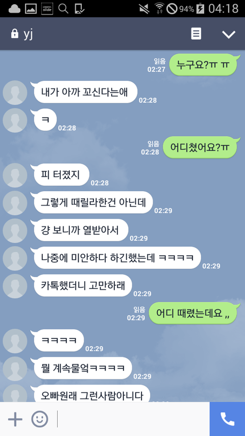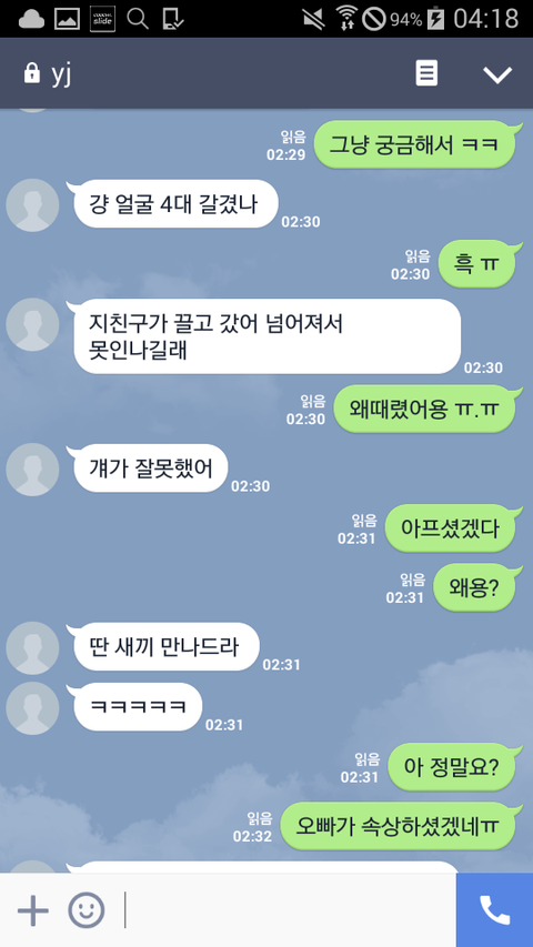 그렇게 오빠 오빠하며 전남친을 꼬시던 와중 전남친이 제 여자친구 때린 얘기를 하더라구요. 아주 자랑스럽게 당당하게 말하더군요. 저는 정말 화가나서 견딜 수가 없습니다.