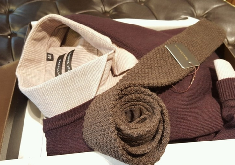 셔츠/니트/니트타이 이렇게 조합이에요.