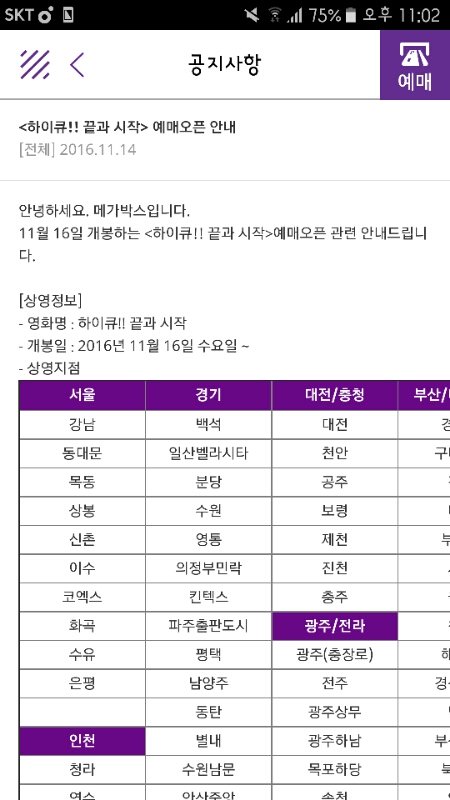 공지에는 우리지역 떴는데 상영 시간표엔 안떴음ㅁ....