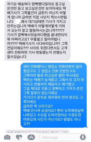 (신랑이 전화뺏어듬) '그게 언제 주문한건데 이제와요.'