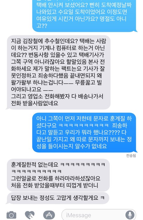 클레임 걸어논 상태고 그쪽에서 택배 본사에 클레임 넣는다 답 들어놓은 상태인데