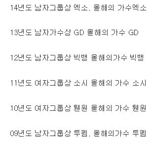 2. 올해의 가수상을 받으면 남자 그룹상은 안받는다?