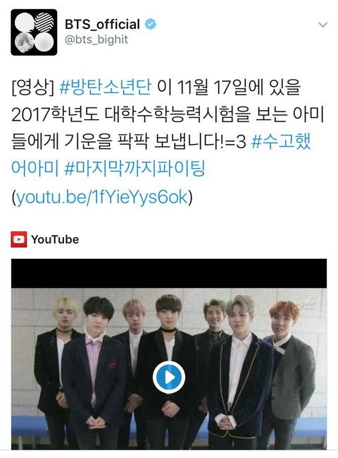 방탄이들이 기운받으래!! 좋은결과 있길..♥