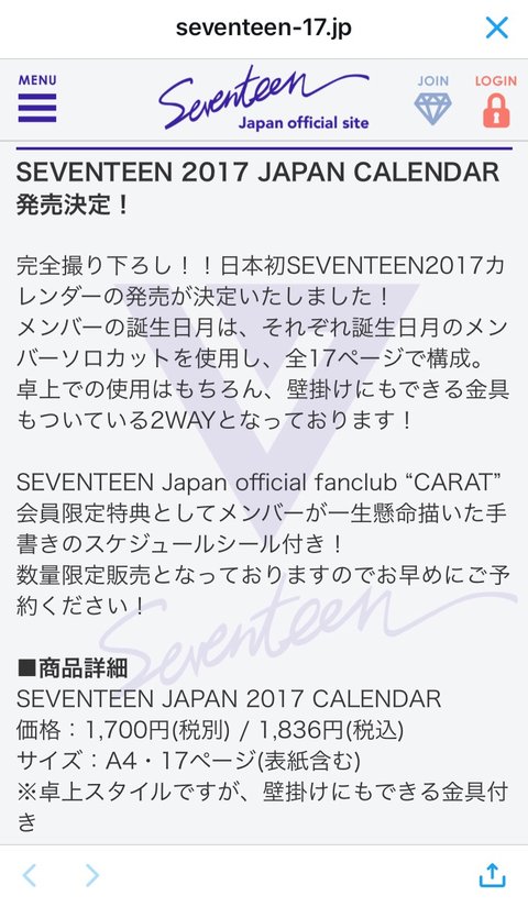 seventeen 2017 japan calendar 발매결정