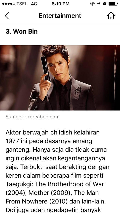 3. 원빈 (ㅋㅋㅋ평범한 얼굴이라니..): "얼굴이 유치하다"-- 이게 무슨 뜻인지 모름.. 동안이라고싶은듯.. 기자님이가 잘못번역함.