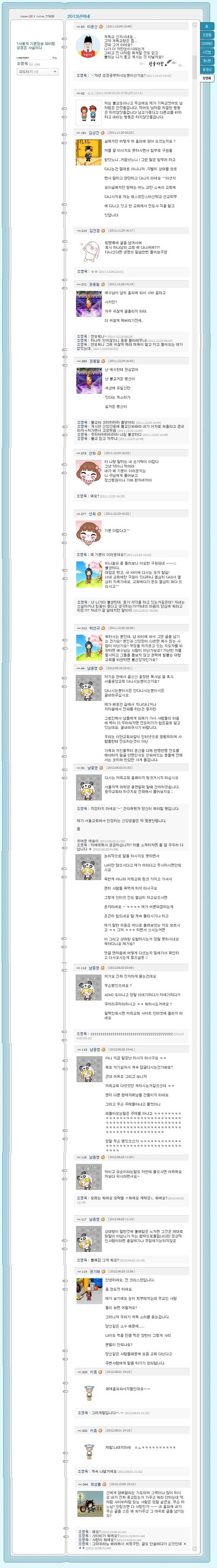 그러자 자신의 싸이 방명록에 올라오는 그 글들에 대고 일일히 동문서답을 하며 조롱하면서 유희를 즐겼는데 이 중에는 같은 구원파 교회에 다니는 신자도 있었다는 점,