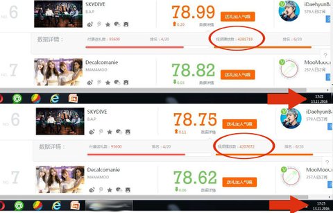 투표하는 동안 В.А.Р 결과가 변화되고 있었어요. 좋은 결과가 나올때마다 갑자기 맨 마지막에 갔어요. 그거 증명해 줄 수 있는 스크린샷을 찍었어요. 다른 그룹에는 그런 변화가 보이지 않는데요.