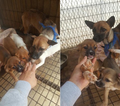 단비는 어느 시골보호소 뜬장에서 7마리의 새끼를 낳았습니다.