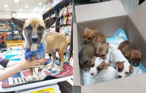 그렇게 품에 안긴 어미견 단비와 다섯마리의 새끼들.