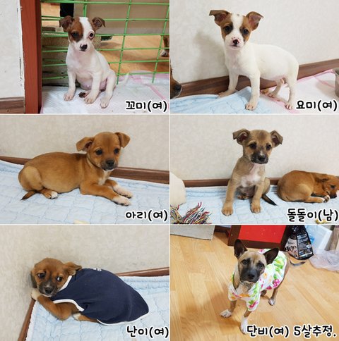 믹스견 새끼들. 두달추정. 남아1 여아4. 1차접종완료.
