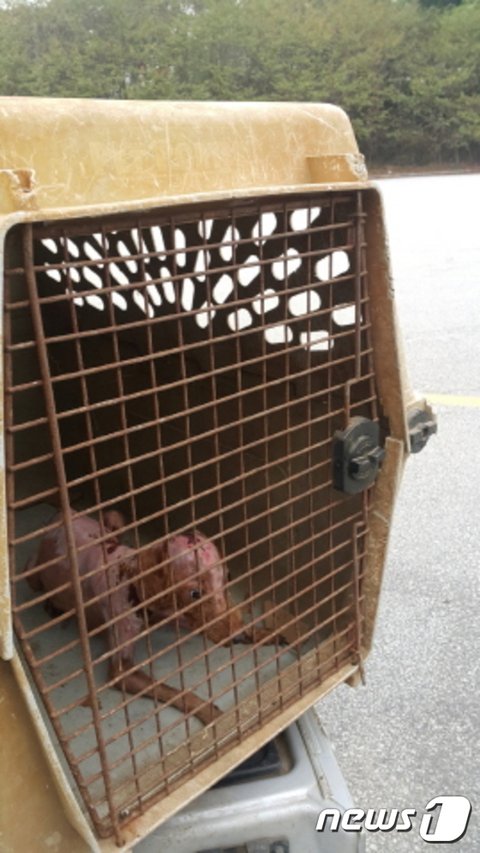 깔판도 깔아주지 않아 제대로 앉지도 못하는 어린 강아지들과 화상과 피부병으로 얼굴이 벗겨진 아이들이 떨고 있습니다!!