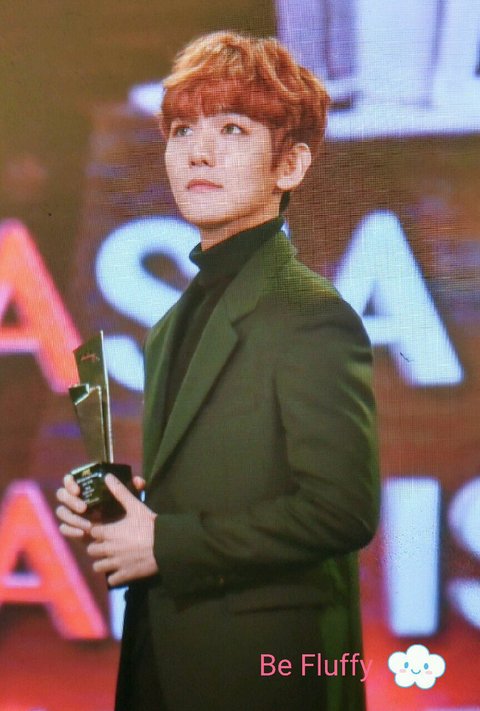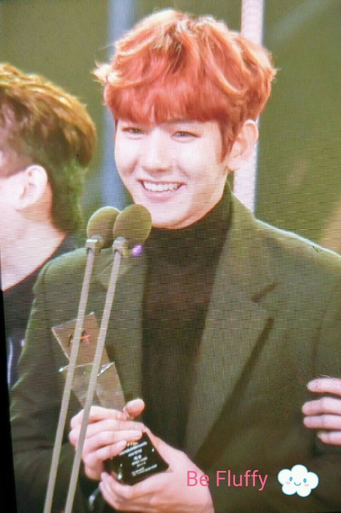 앙~ 백현이 상받고 웃는다