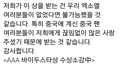 161116 AAA 바이두 스타상 수상소감