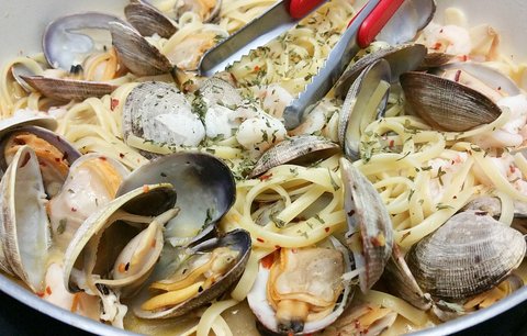 월남쌈 해먹고 남은 새우가 있어 새우넣고 모시조개 해감해 후다닥 만든 해물 파스타. 점심으로 한그릇 뚝딱 비웠어요. 토마토 소스보다 담백하고 맛난거같아요.